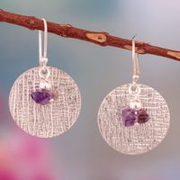 Textured Sterling Silver Dangle Earrings with Amethyst Stone 'Mysterious Reflections' Item ID: 2671400057