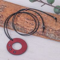 Thai Amethyst and Red Leather Pendant Necklace 'Red Lucky Ring' Item ID: 2671797887
