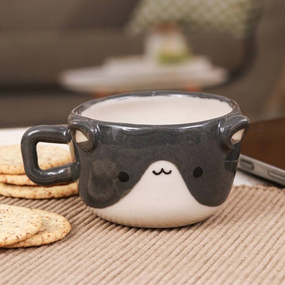 Thai Animal-Themed Ceramic Grey White Cat Espresso Cup 'Feline Demitasse' Item ID: 2671796656