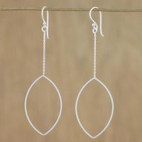 Thai Artisan Crafted Sterling Silver Oval Dangle Earrings 'Breezy Oval' Item ID: 2671801606