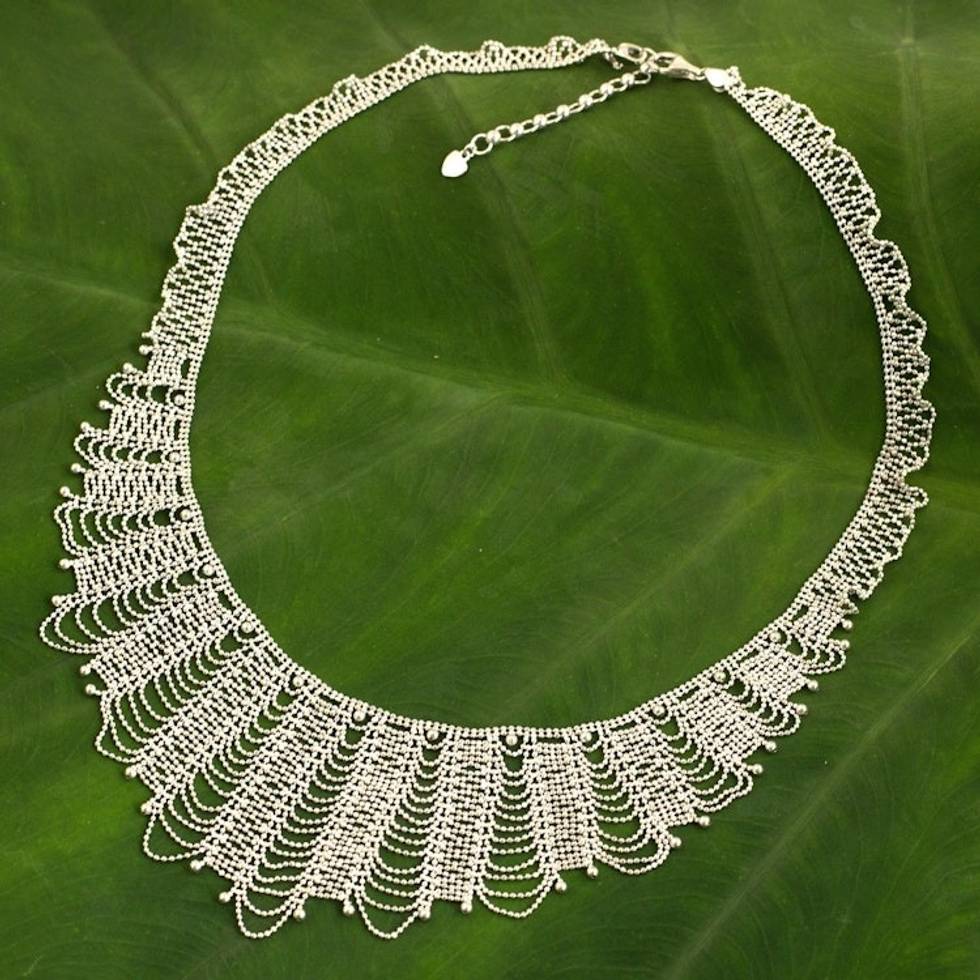 Thai Artisan Crafted Sterling Silver Waterfall Necklace 'Grand Dame' Item ID: 2671801850