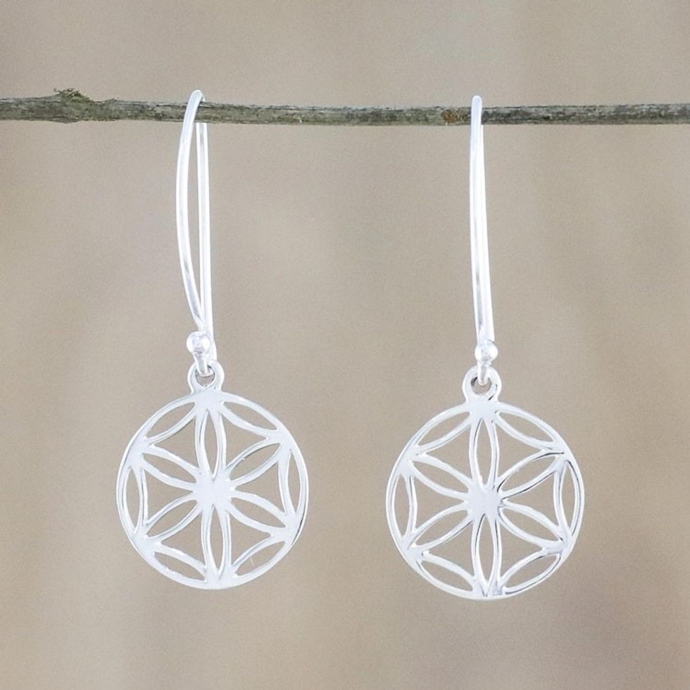 Thai Artisan Handmade Sterling Silver Floral Dangle Earrings 'Inner Blooms' Item ID: 2671800604