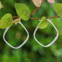 Thai Artisan-Made Minimalist Sterling Silver Hoop Earrings 'Sides of Utopia' Item ID: 2671796922