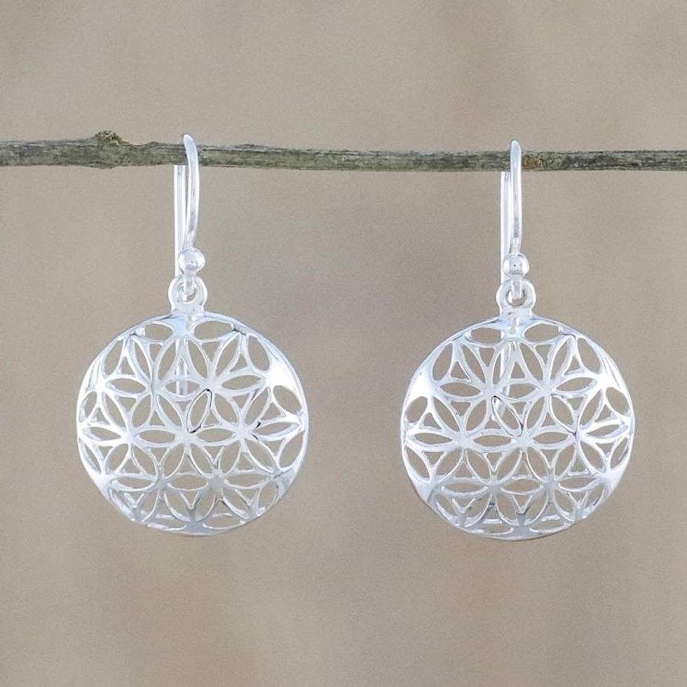 Thai Artisan Sterling Silver Floral Motif Dangle Earrings 'Full Bloom' Item ID: 2671801271