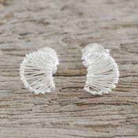 Thai Artisan Sterling Silver Wire Wrapped Moon Stud Earrings 'Unseen Moons' Item ID: 2669926324