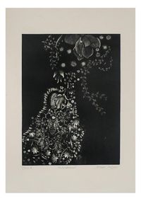 Thai Black and White Etching Print of Flowers and Insects 'Beauty in the Form of Nature' Item ID: 2669889031