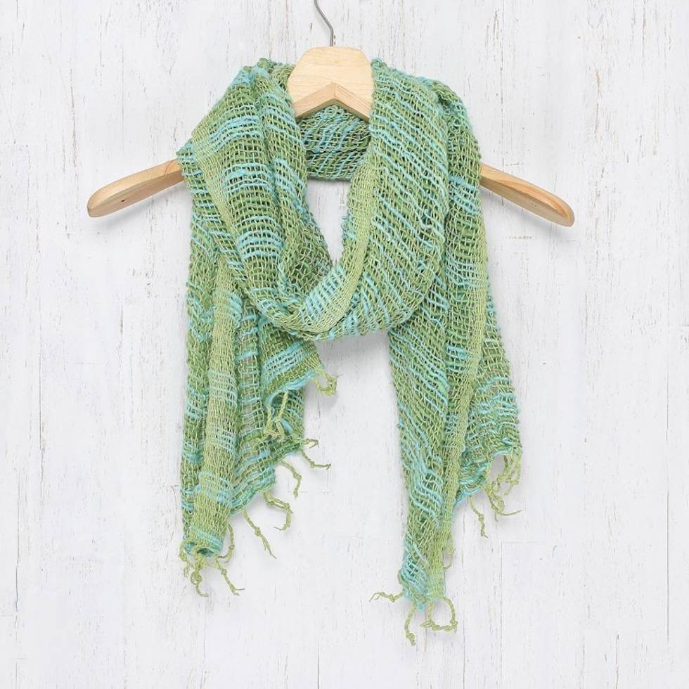 Thai Blue and Green Cotton Scarf 'Breezy Blue and Green' Item ID: 2669897437