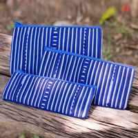 Thai Blue and White Cotton Blend Travel Cases Set of 3 'Blue Lisu Chic' Item ID: 2671802188