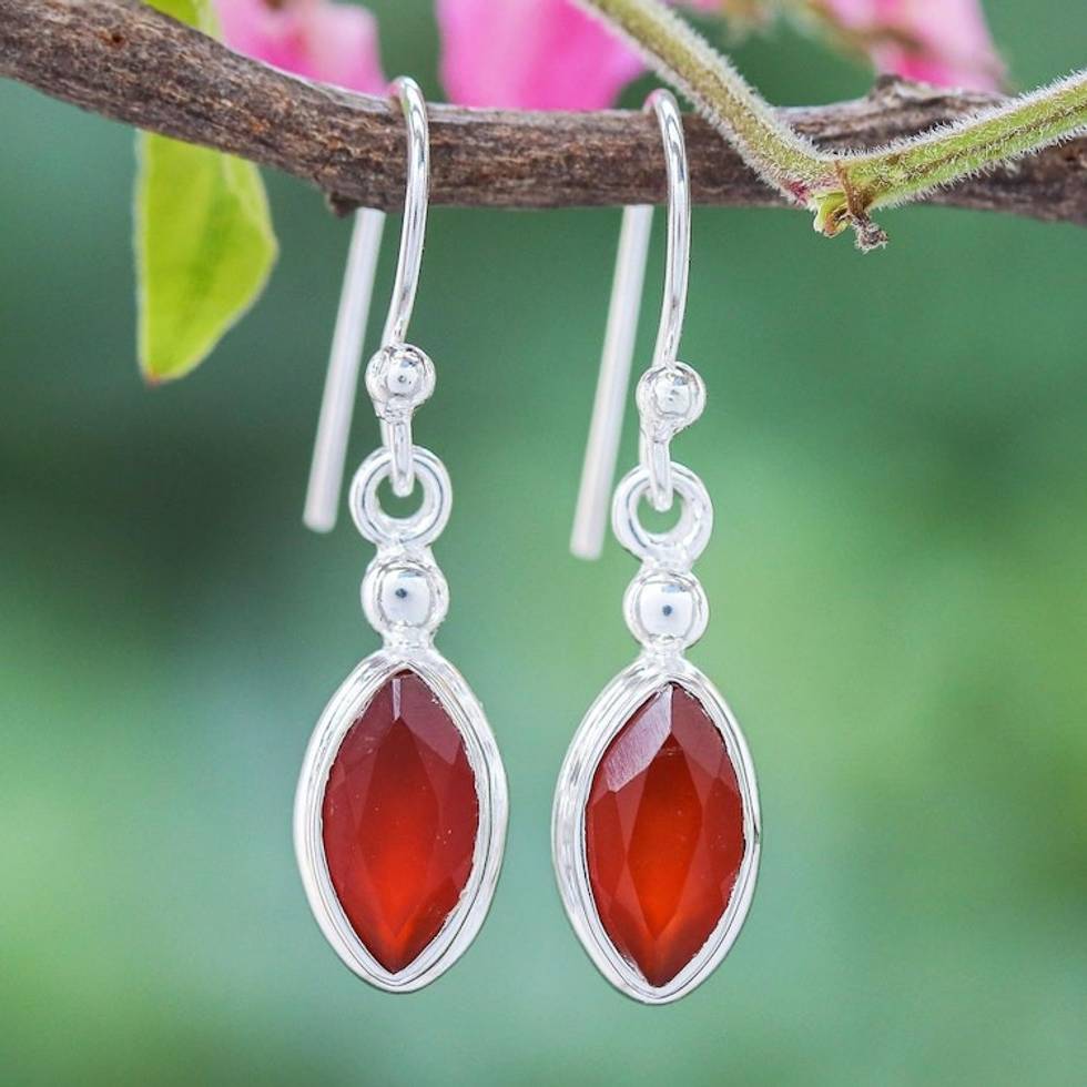 Thai Carnelian and Sterling Silver Dangle Earrings 'Spark Joy in Orange' Item ID: 2671799623