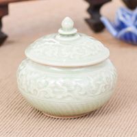 Thai Celadon Ceramic Decorative Leaf-Themed Jar in Green 'Luxurious Green' Item ID: 2671797737