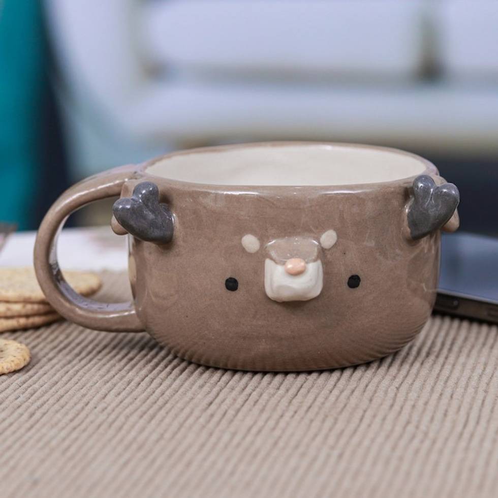 Thai Ceramic 6 oz Deer Cup with a Glossy Finish 'Deer Elixir' Item ID: 2671796548