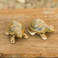 Thai Ceramic Turtle Figurines in Brown-Green Pair 'Resilient Turtles' Item ID: 2676656302