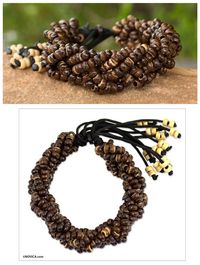 Thai Coconut Shell Braided Bracelet 'Nutmeg Forest' Item ID: 2671802940