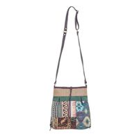Thai Cotton Patchwork Sling Bag with Leather Strap 'Intermission in Green' Item ID: 2676651785