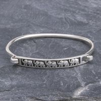 Thai Elephant Sterling Silver Bangle Bracelet 'Pachyderm Parade' Item ID: 2671640985