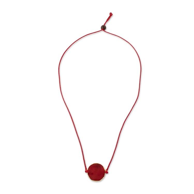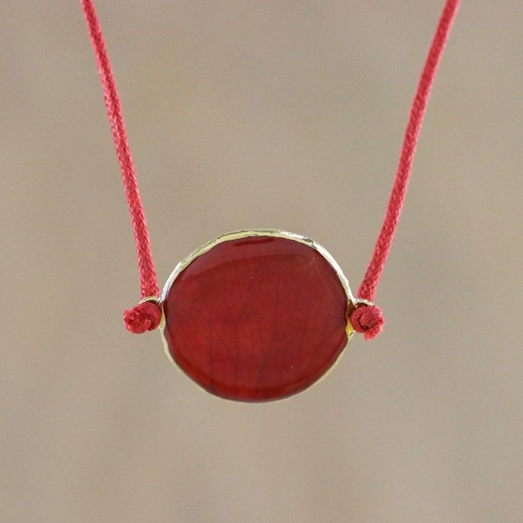 Thai Gold Accented Natural Rose Petal Pendant Necklace 'Scarlet Delight' Item ID: 2671801580