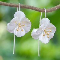 Thai Gold-Accented Sterling Silver Drop Earrings 'Ever-Blooming' Item ID: 2671640834
