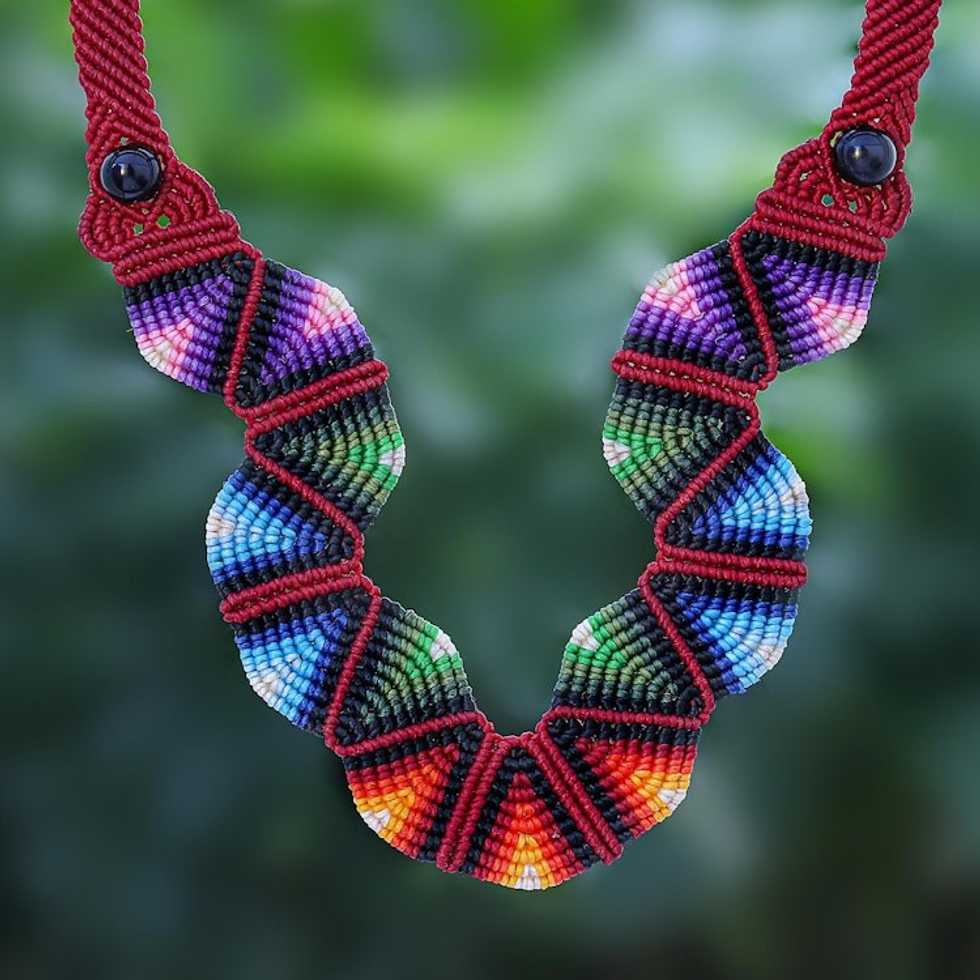 Thai Hand Crafted Macrame Onyx Beaded Necklace 'Boho Morning in Scarlet' Item ID: 2671799932