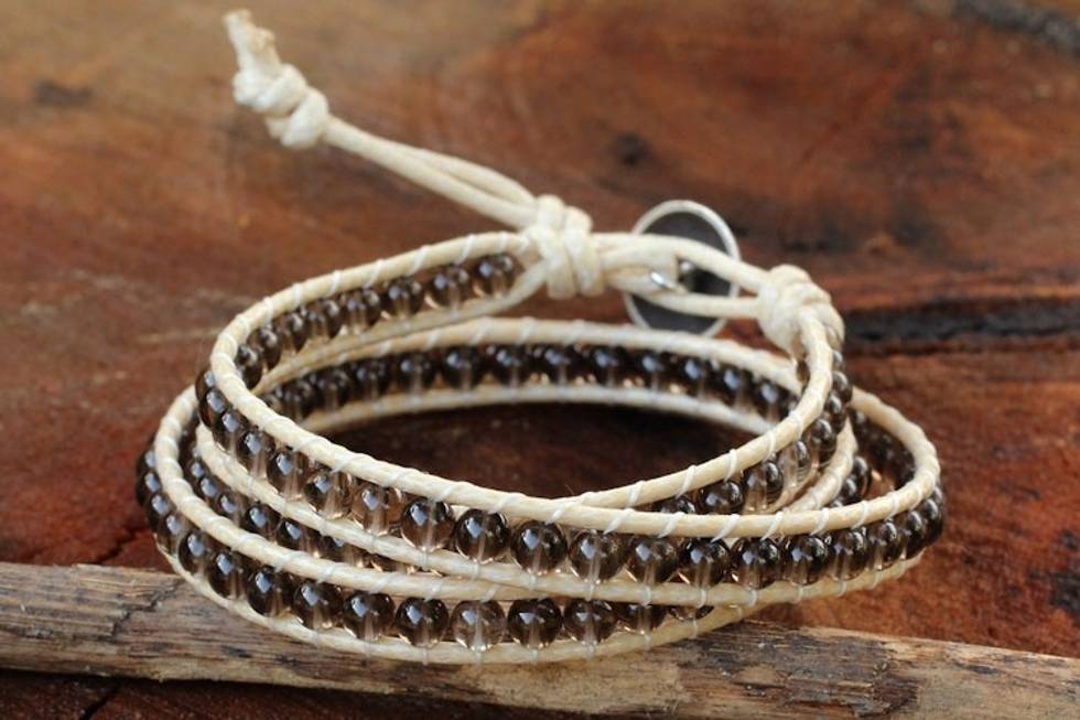 Thai Hand Knotted Smoky Quartz Wrap Bracelet 'Subtle Sigh' Item ID: 2671803124