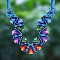 Thai Hand Threaded Macrame Lapis Lazuli Beaded Necklace 'Boho Morning in Blue' Item ID: 2669925978