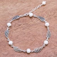 Thai Handcrafted Cultured Pearl Bracelet with Silver Wings 'Flying Free' Item ID: 2671798324
