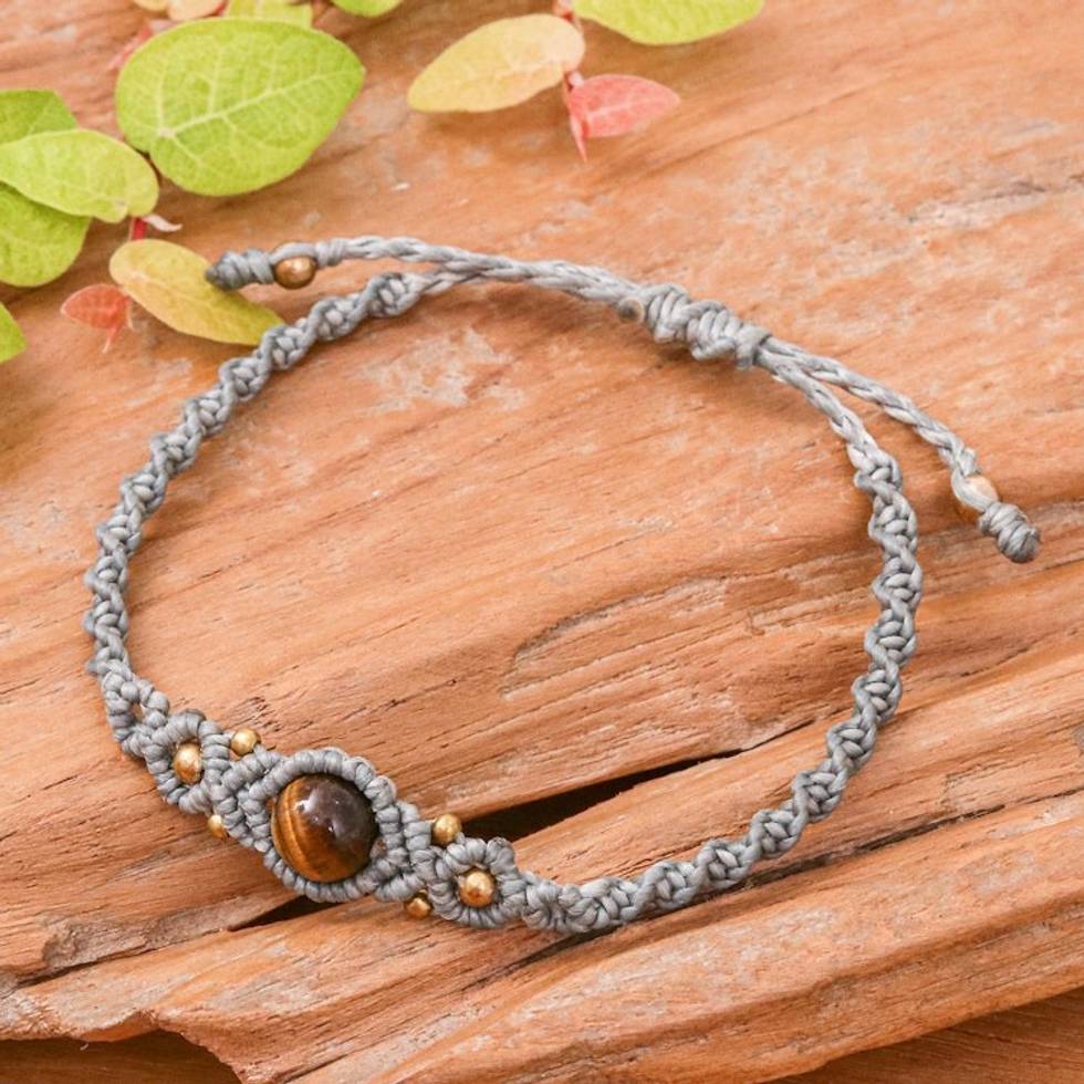 Thai Handcrafted Grey Tiger's Eye Macrame Pendant Bracelet 'Sole Power' Item ID: 2671646723