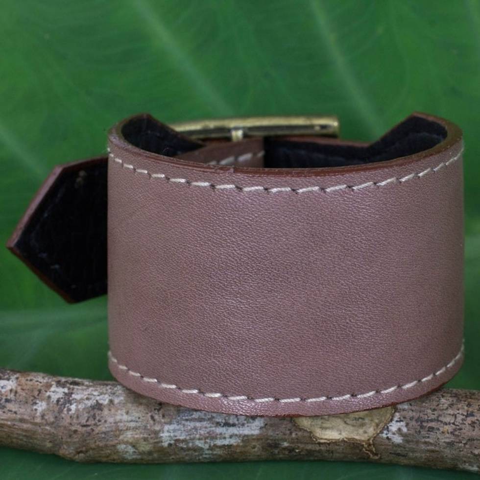 Thai Handcrafted Leather Wristband in Grey-Brown 'Courage in Versatile Brown' Item ID: 2671801972