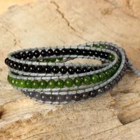 I wear this wrap bracelet often as I love the sporty look. Very comfortable on and I appreciate having the two size loops to choose from so that I can fit this well to my wrist. I do wish that the rhodonite beads were as vividly pink and striking as they are in the photo, but you can't have everything. They other beads are gorgeous. A wonderful piece.