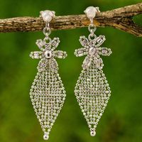 Thai Handcrafted Sterling Silver Daisy Dangle Earrings 'Daisy Diamond' Item ID: 2671802235