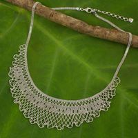 Thai Handcrafted Sterling Silver Waterfall Necklace 'Ruffled Jasmine' Item ID: 2671802399