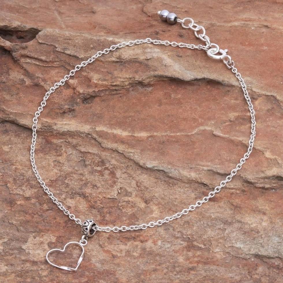 Thai Handmade Sterling Silver and Hematite Charm Anklet 'Your Love' Item ID: 2671800547