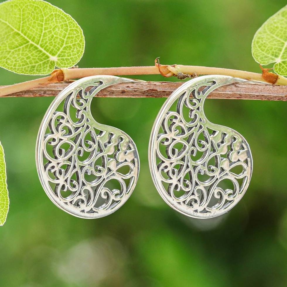 Thai Handmade Sterling Silver Ornate Drop Earrings 'Fancy Paisleys' Item ID: 2671800774