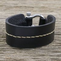 Thai Handmade Tan and Black Leather Wristband Bracelet 'Determined Spirit' Item ID: 2671801732