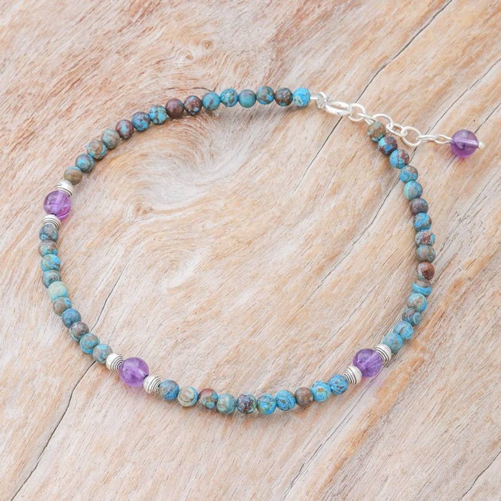 Thai Jasper and Amethyst Beaded Anklet 'Barefoot Charm' Item ID: 2669926310