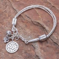 Thai Karen Hill Tribe Silver Beaded Floral Charm Bracelet 'Floral Weave' Item ID: 2676648299