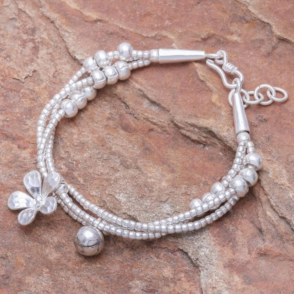 Thai Karen Hill Tribe Silver Floral Bracelet with a Bell 'Singing Blossom' Item ID: 2671798801