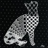 Thai Kitty Cat Painting with Design Motifs 'Waiting Cat' Item ID: 2671797699