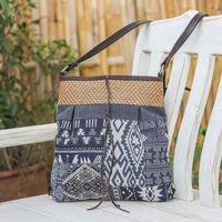 Thai Leather-Accented Cotton Blend Sling Bag in Blue 'Intermission in Blue' Item ID: 2671641339