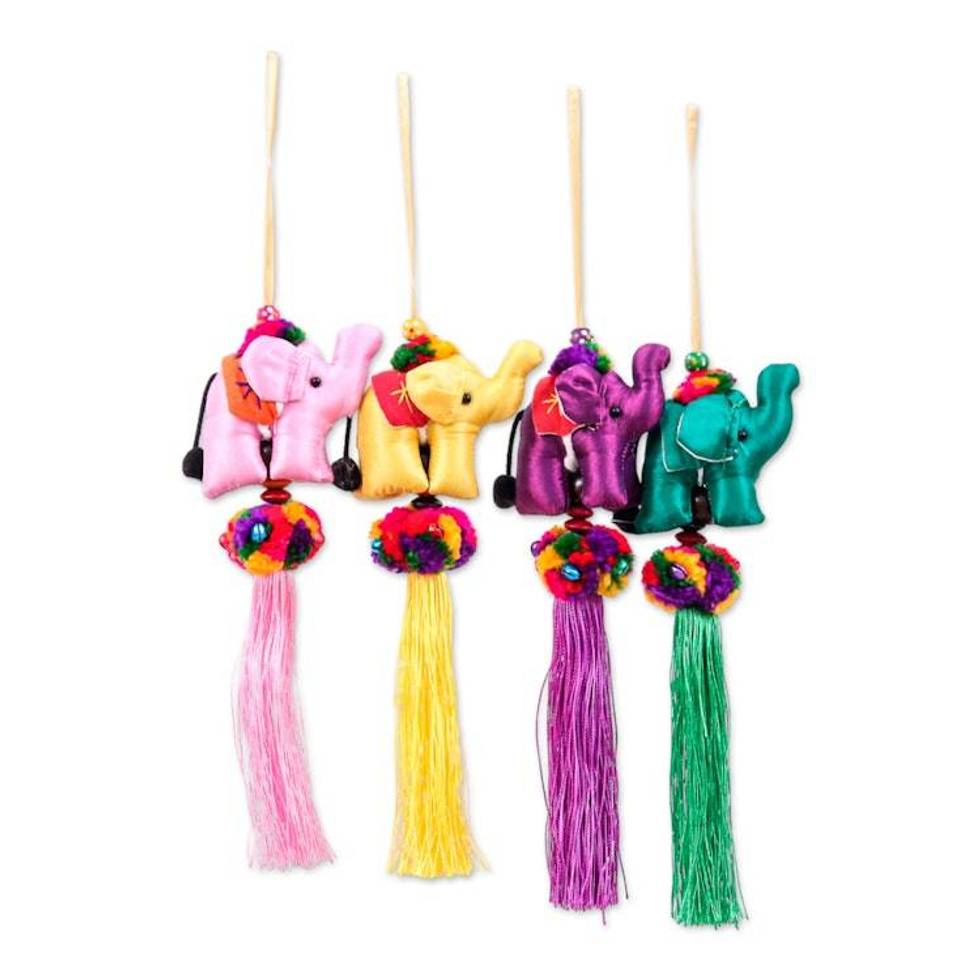 Thai-Made Elephant-Themed 4-Piece Cotton Blend Ornament Set 'Luxurious Luck' Item ID: 2676653070