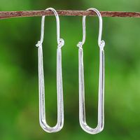 Thai-Made Minimalist Sterling Silver Oblong Hoop Earrings 'Grand Class' Item ID: 2671796696