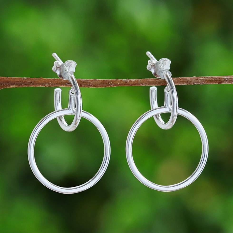 Thai Modern High-Polished Sterling Silver Dangle Earrings 'Ethereal Life' Item ID: 2671796881