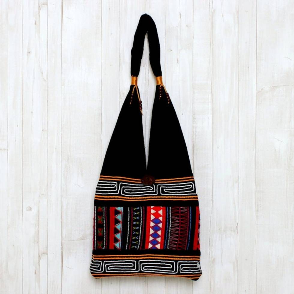 Thai Multicolored Cotton Shoulder Bag with Geometric Motif 'Mesmerizing Thai' Item ID: 2671799209