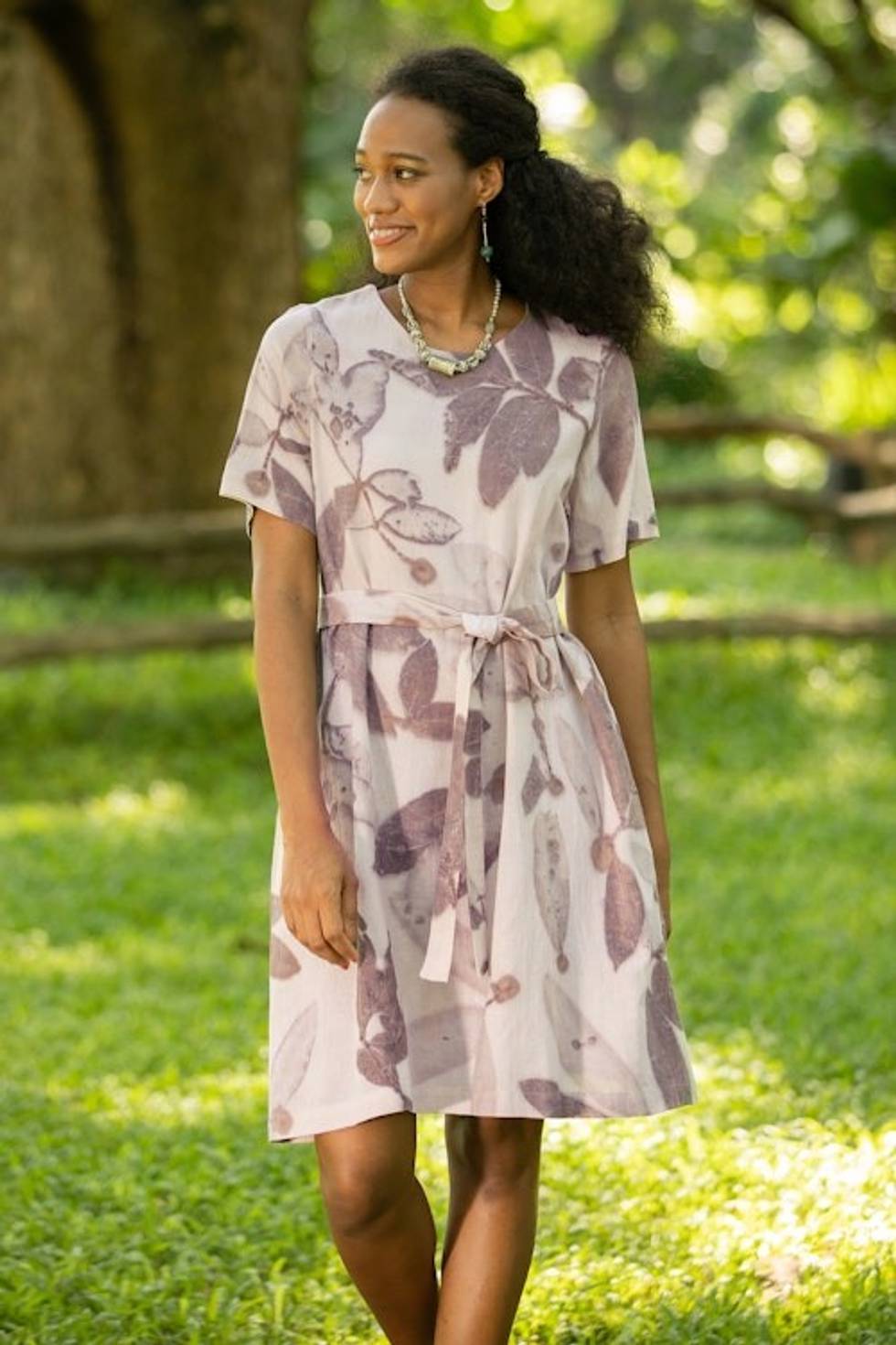 Thai Ouke-Printed Cotton Shift Dress 'Mellow Leaves' Item ID: 2669925649