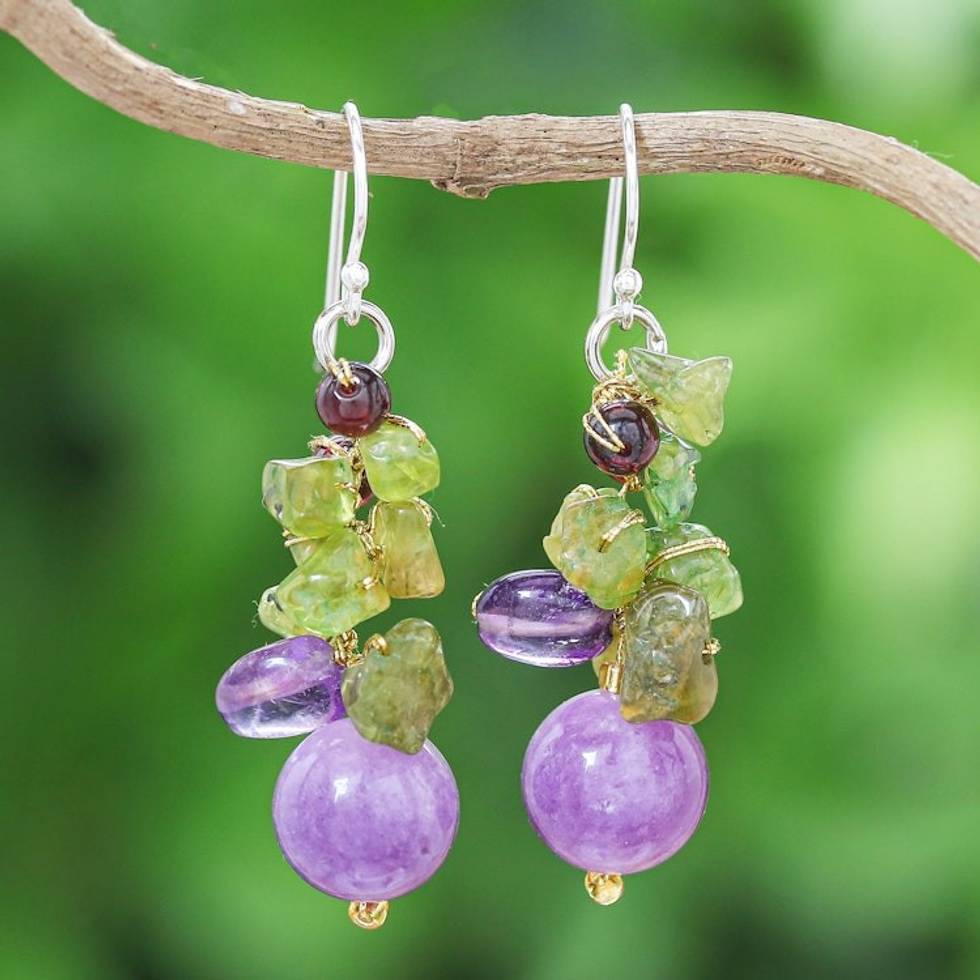 Thai Peridot and Amethyst Dangle Earrings 'Violet Forest' Item ID: 2669926120