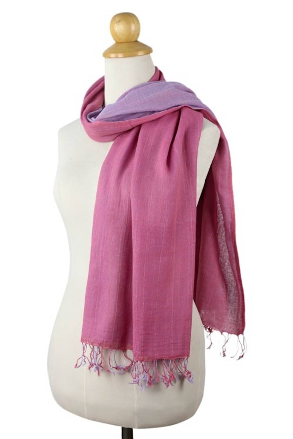 Thai Pink and Light Purple Cotton Scarf 'Lilac Rose Duo' Item ID: 2669897484