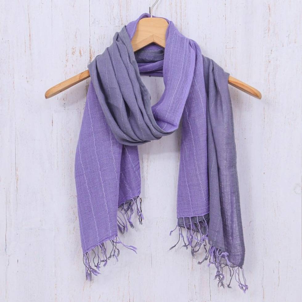 Thai Purple Cotton Scarf 'Purple Duo' Item ID: 2669897493