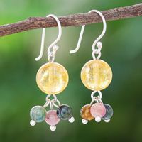 Thai Quartz and Tourmaline Dangle Earrings 'Howling Moon' Item ID: 2676651717