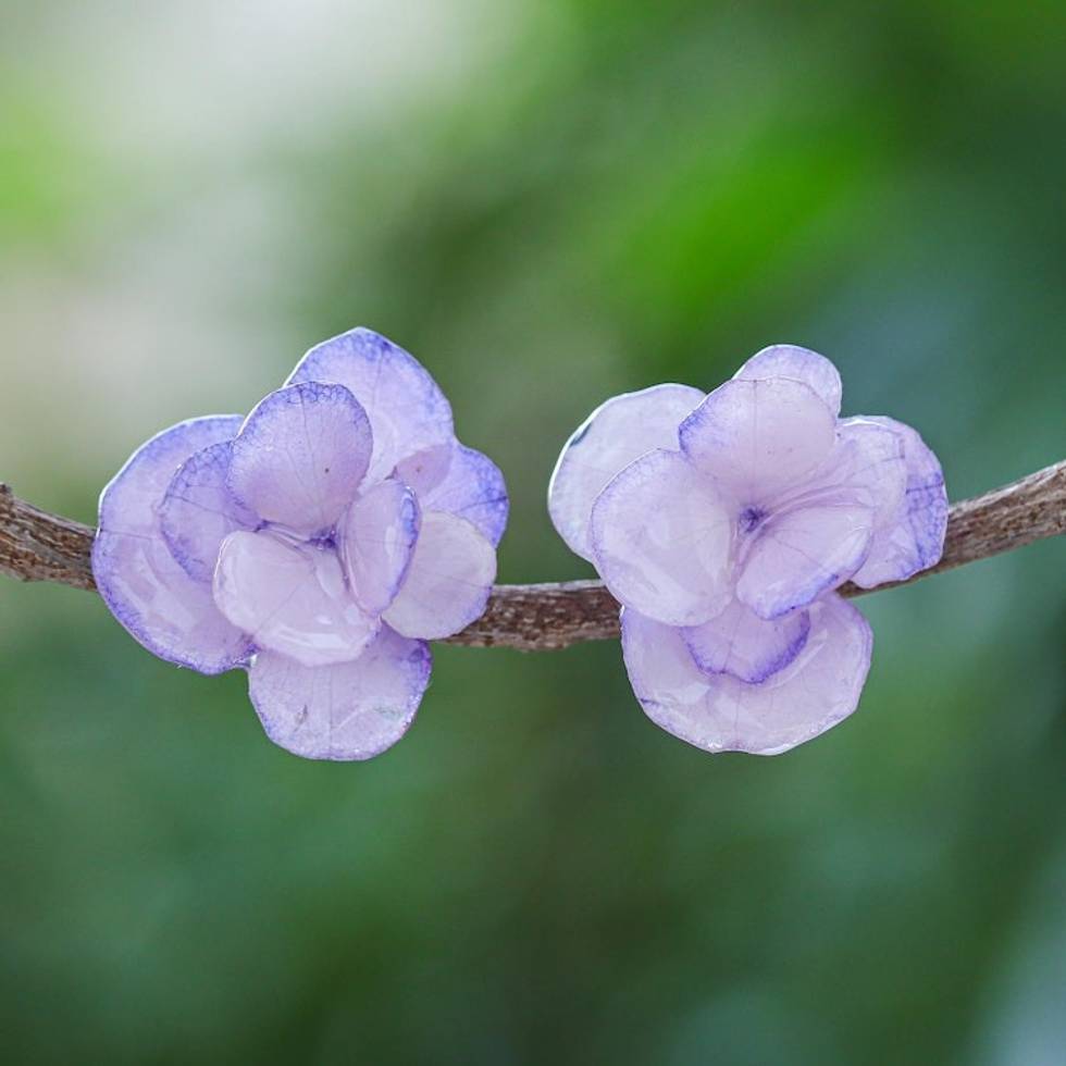 Thai Resin Coated Purple Hydrangea Bloom Post Earrings 'Purple Hydrangea' Item ID: 2669926236