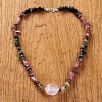 Thai Rose Quartz and Tourmaline Beaded Pendant Necklace 'Natural Rose' Item ID: 2671801054