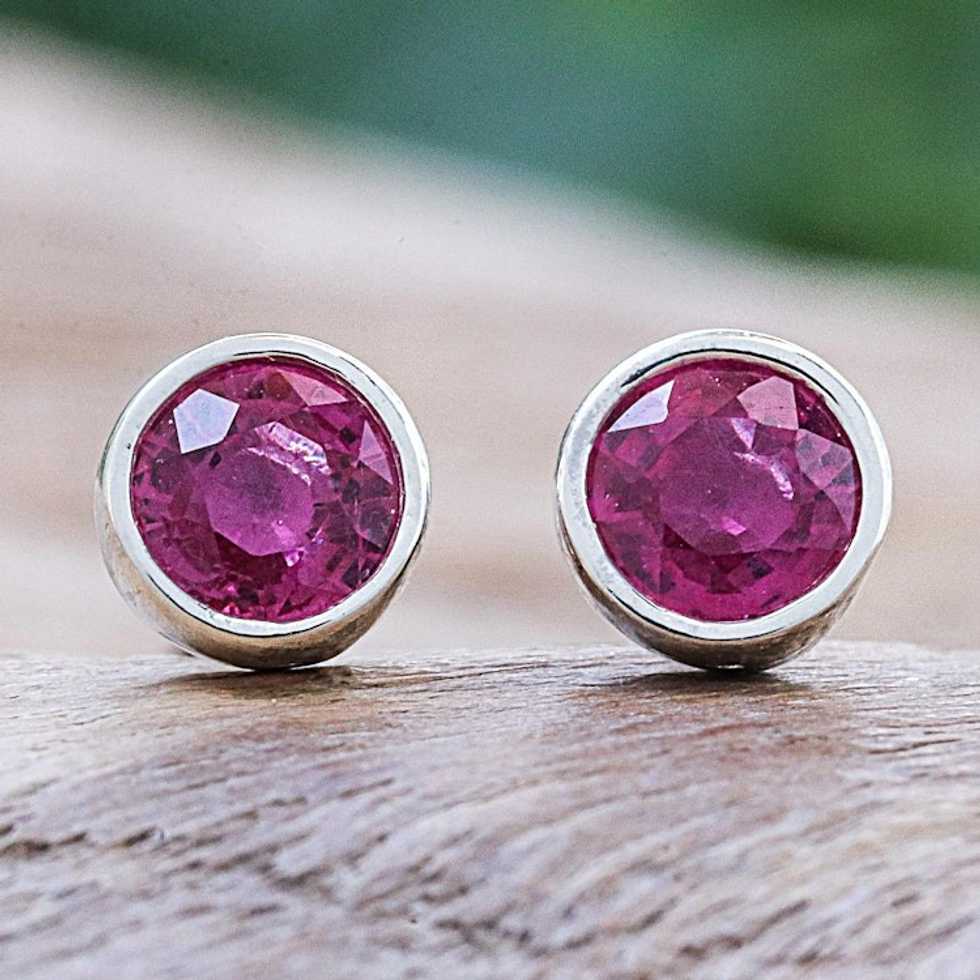 Thai Ruby and Sterling Silver Stud Earrings 'Round Star' Item ID: 2669926040